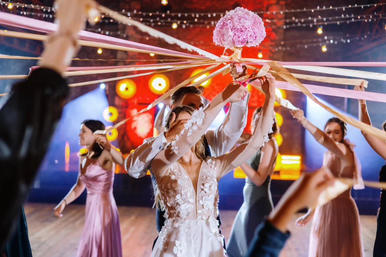 Potem przyszła pora na oczepiny. Ale nie te kiczowate, których wszyscy się boją. Był test zgodności (Kasia i Andrzej byli zadziwiająco zgodni, co tylko potwierdziło, jak dobrze się znają!) i zabawa ze wstążkami. Wszystko prowadzone z klasą, lekkością i humorem, co jest znakiem rozpoznawczym Magicznej Nocy.